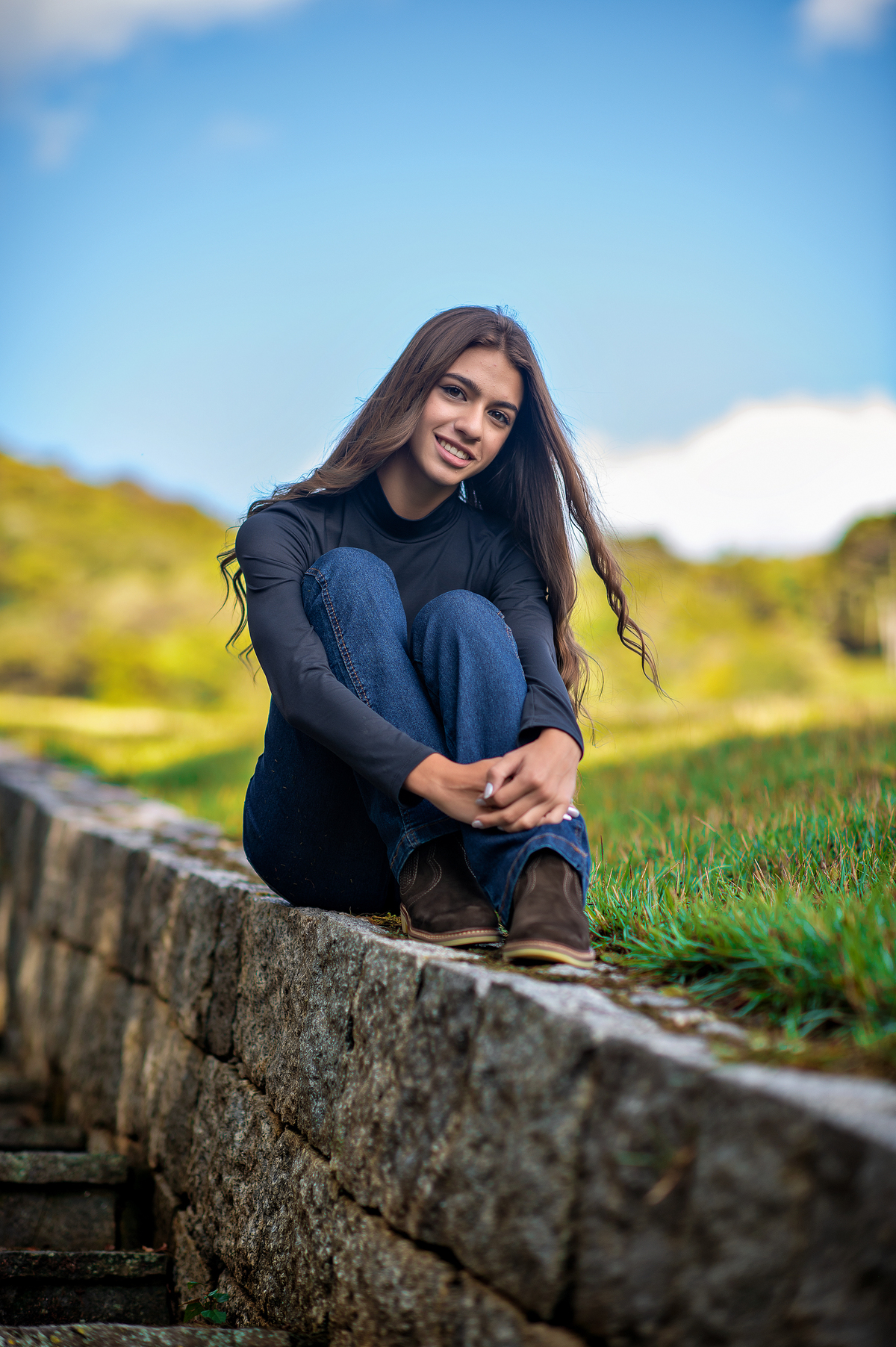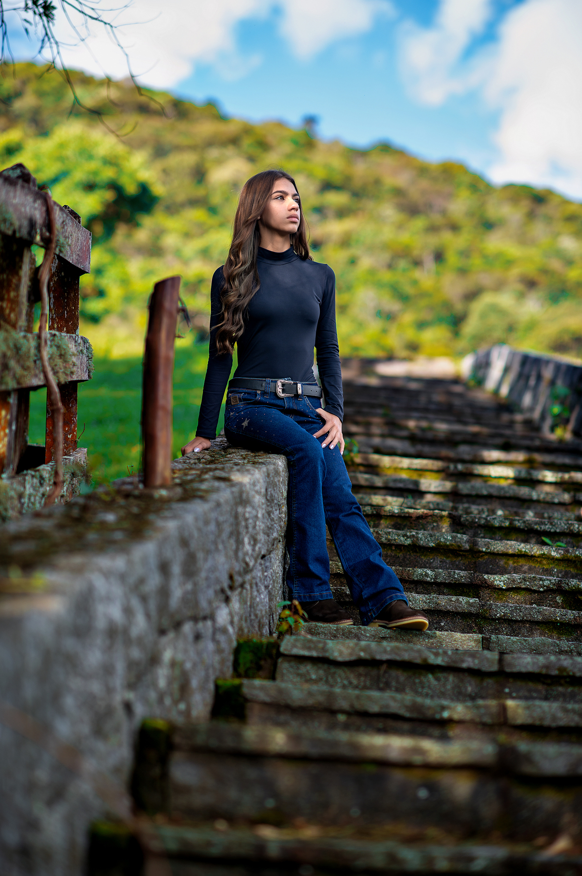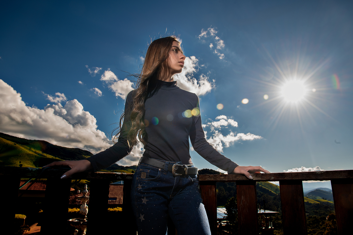 Quando chegamos ao local, a luz ainda estava tímida. Mesmo assim, posicionamento, fluxos de pose e estudo prévio do ambiente garantiram que tudo estivesse pronto caso o céu abrisse. E ele abriu. O sol não apenas apareceu. Ele entrou na narrativa. Entregou brilho, profundidade e um contraste perfeito para um ensaio que tinha como objetivo valorizar elegância, força e personalidade.